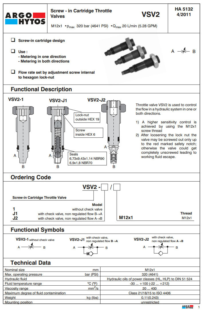 VSV2-1,VSV2-J1,VSV2-J2,ARGO插裝節(jié)流閥