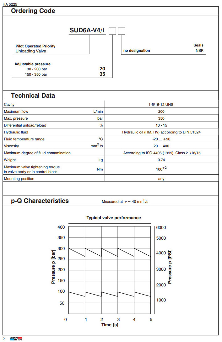 SUD6A-V4/I20,SUD6A-V4/I35,ARGO先導(dǎo)優(yōu)先卸荷閥