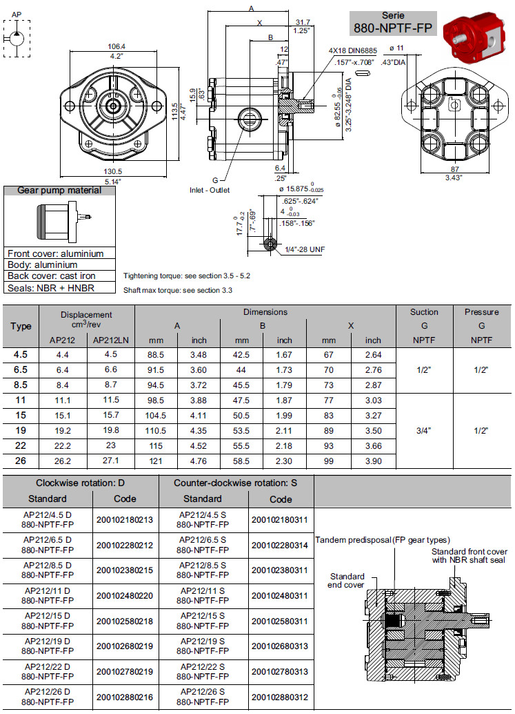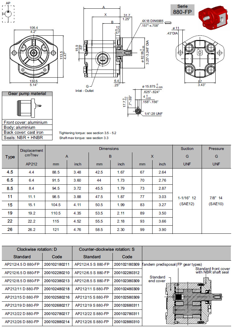 型號: AP212/4.5-D-880-FP,AP212/6.5-D-880-FP,AP212/8.5-D-880-FP,AP212/11-D-880-FP,