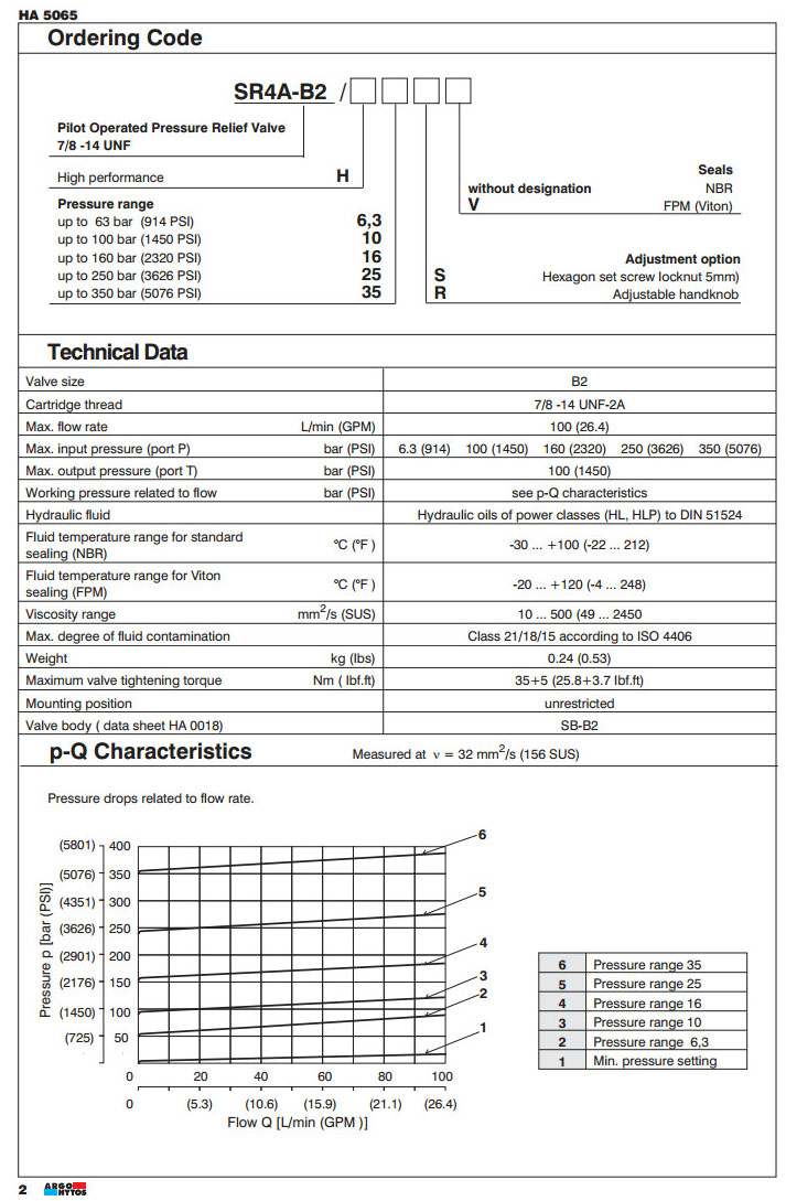 SR4A-B2/6.3,SR4A-B2/10,SR4A-B2/16,SR4A-B2/25,SR4A-B2/35,ARGO先導式泄壓閥
