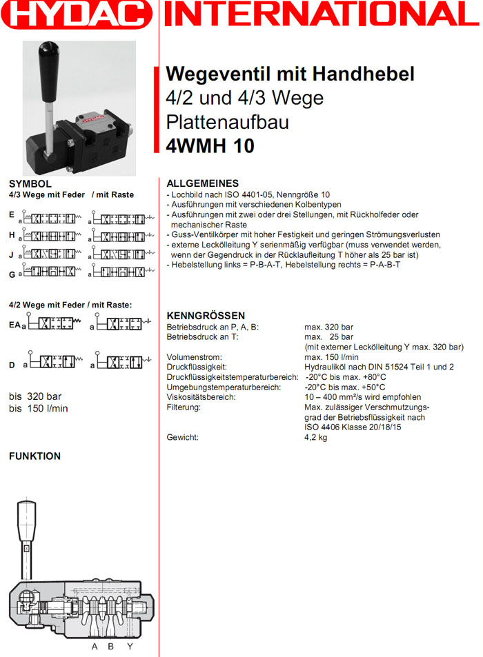 4WMH10D-F01/V,4WMH10E01/V,4WMH10J01/V,HYDAC手動換向閥