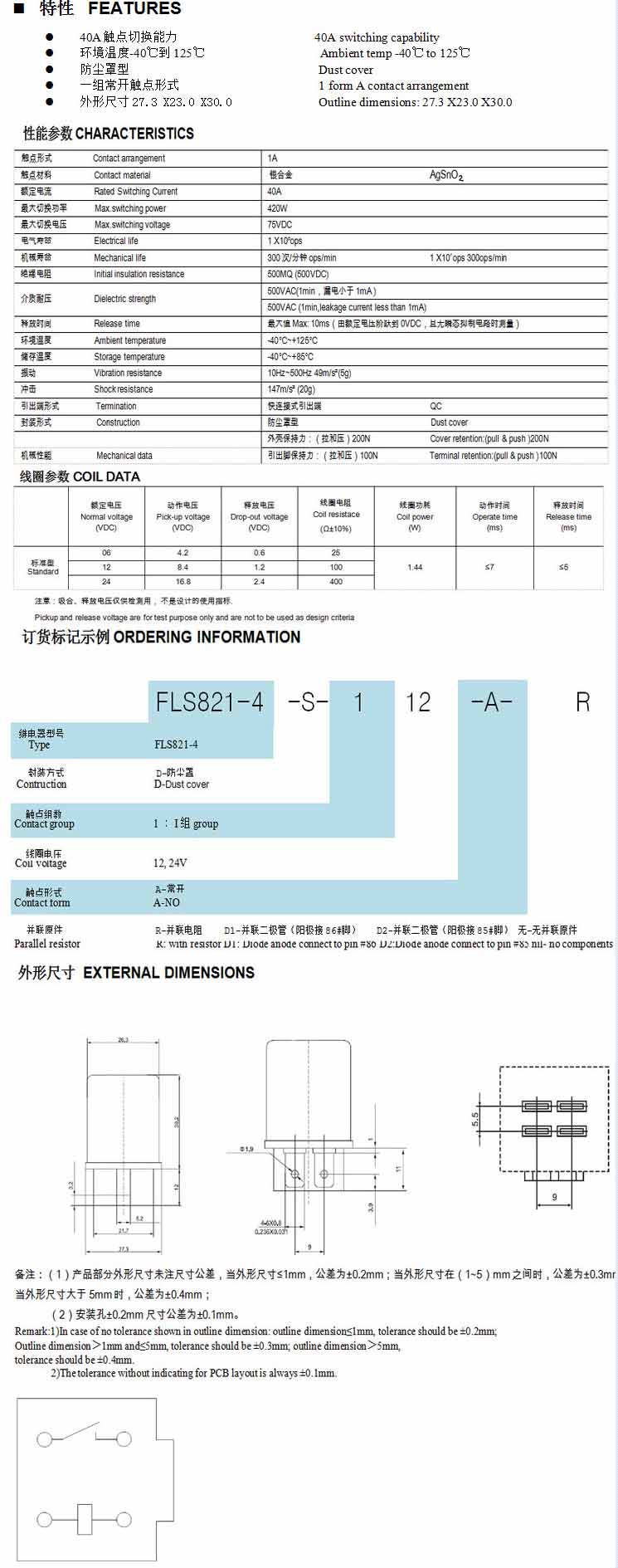 FLS821-4,汽車繼電器