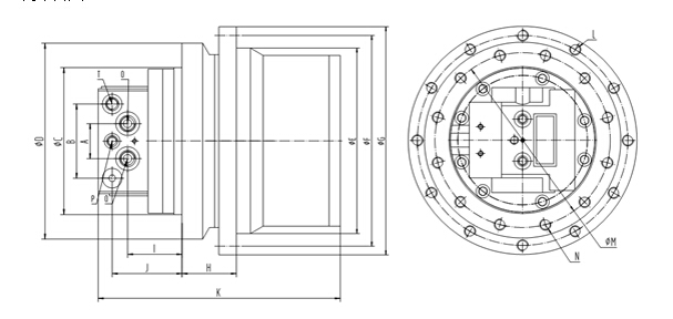 本產(chǎn)品為馬達(dá)與減速機(jī)一體的行走裝置。由集成于減速機(jī)內(nèi)部的雙排量軸向柱塞馬達(dá)、行走減速器組成。馬達(dá)內(nèi)置安全閥、防反轉(zhuǎn)閥、停車制動(dòng)裝置及高低二檔轉(zhuǎn)換裝置,它的特點(diǎn)是:傳動(dòng)比范圍大、結(jié)構(gòu)緊湊、工作效率高、可靠性強(qiáng)、體積小、運(yùn)動(dòng)平穩(wěn)、噪音低等,同時(shí)具有多級(jí)安全保護(hù)、使用壽命長(zhǎng)等優(yōu)點(diǎn)。適用于液壓履帶驅(qū)動(dòng)行走裝置。