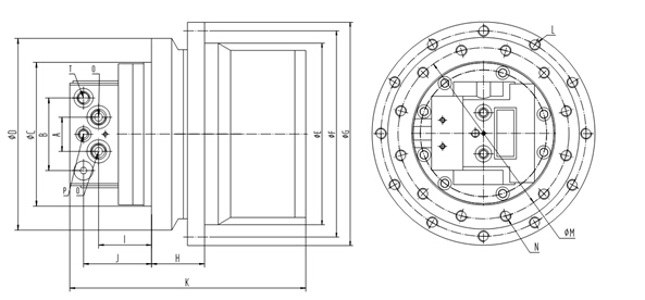 本產(chǎn)品為馬達(dá)與減速機(jī)一體化的行走裝置。內(nèi)置兩級(jí)或三級(jí)緩沖安全閥、平衡閥、停車(chē)制動(dòng)器、高低二檔轉(zhuǎn)換等裝置。結(jié)構(gòu)緊湊、工作效率高、可靠性強(qiáng)。適用于挖掘機(jī)、潛孔鉆機(jī)、水平定向鉆機(jī)、扒渣機(jī)、掘進(jìn)機(jī)、履帶式全液壓焊接工作站等車(chē)輛。