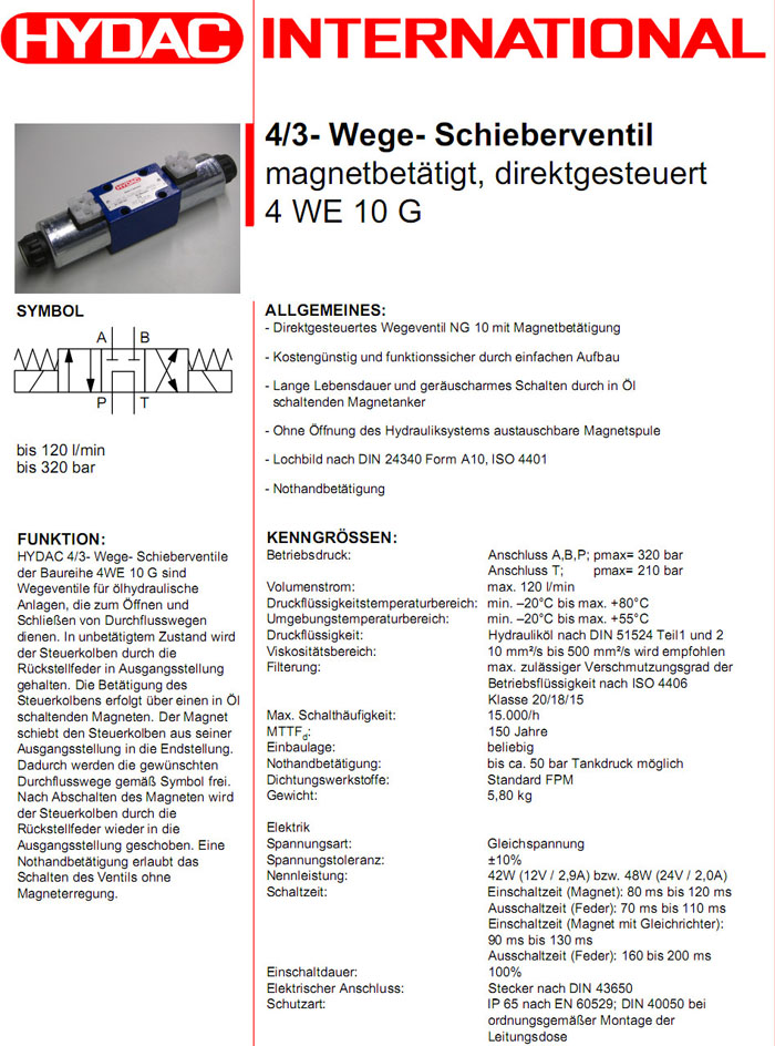 4WE10GS01-12DG/V,4WE10GS01-24DG/V,HYDAC電磁4/3方向滑閥