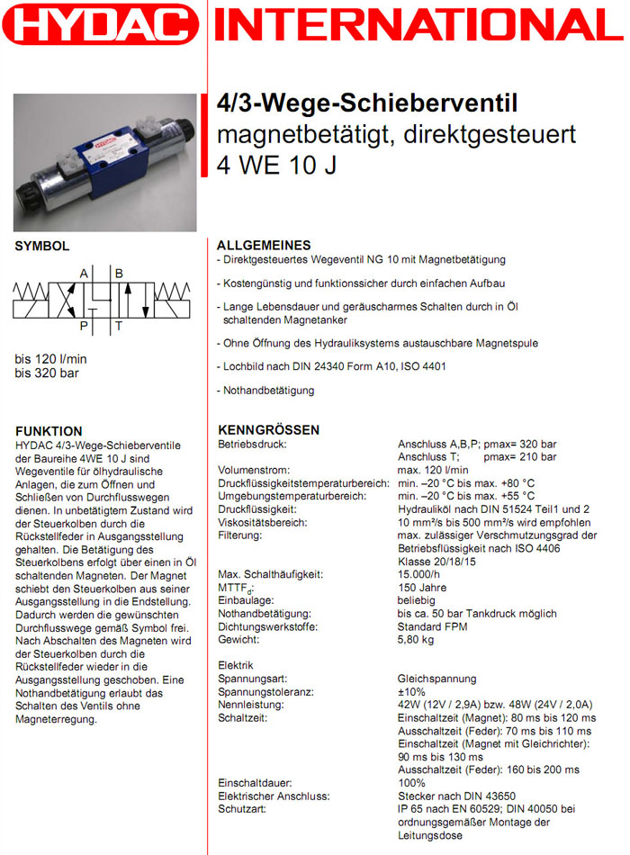 4WE10JS01-12DG/V,4WE10JS01-24DG/V,HYDAC電磁4/3方向滑閥