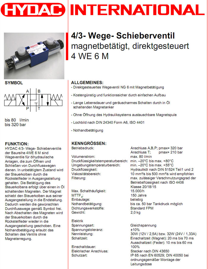 4WE6MS01-12DG/V,4WE6JS01-24DG/V,HYDAC電磁4/3方向滑閥