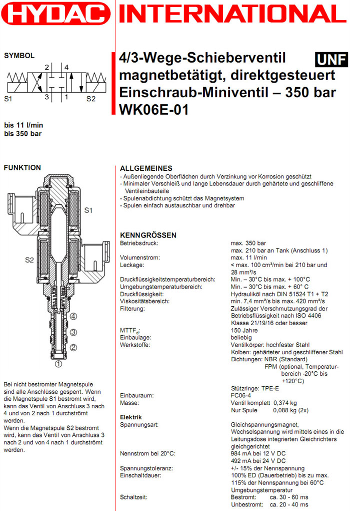 WK06E-01M-C-N-0,WK06E-01-C-N-0,WK06E-01A-C-N-0,HYDAC電磁4/3方向滑閥 |