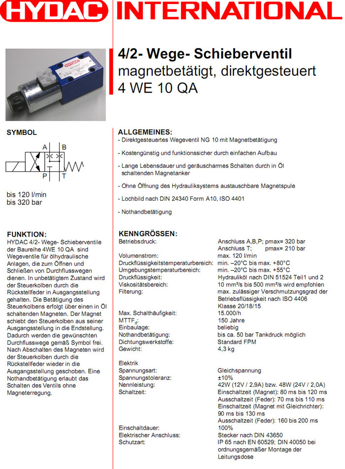 4WE10QAS01-12DG/V,4WE10QAS01-24DG/V,HYDAC電磁4/2方向滑閥