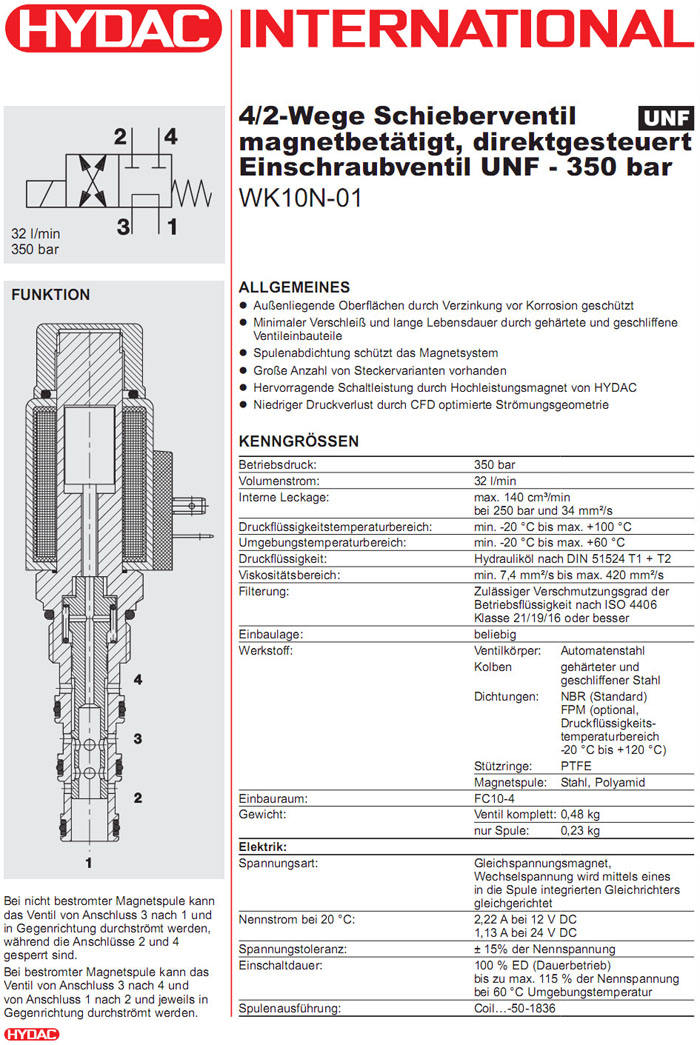 WK10N-01-C-N-24DG,WK10N-01-C-N-230AG,HYDAC電磁4/2方向滑閥