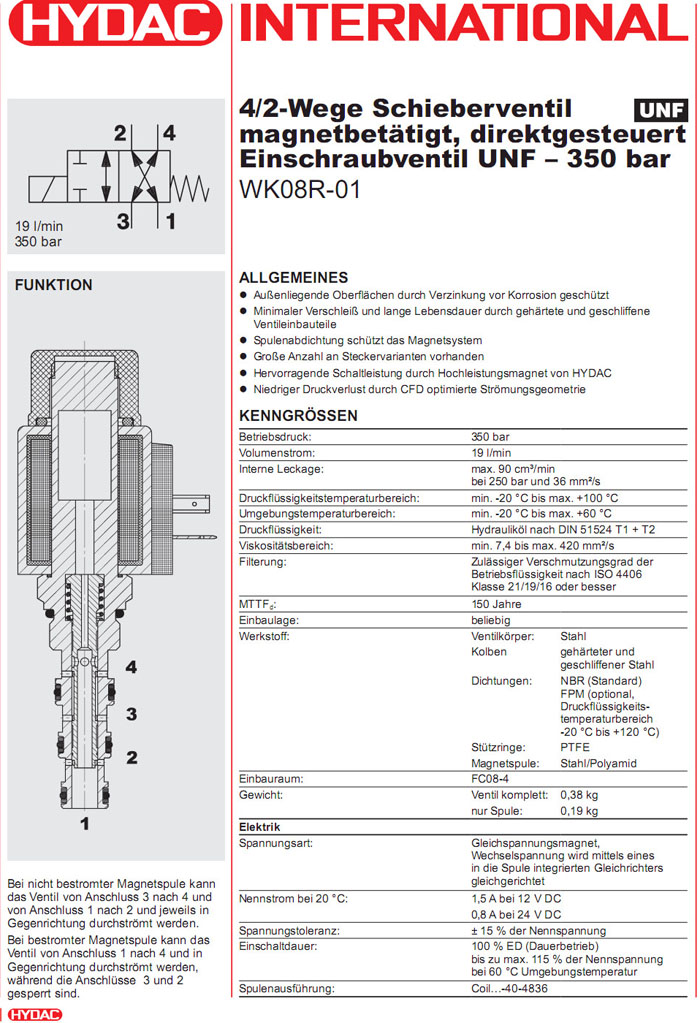 WK08R-01-C-N-12DG,WK08R-01-C-N-24DG,WK08R-01-C-N-230AG,HYDAC電磁4/2方向滑閥