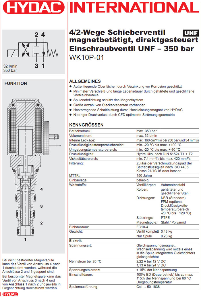 WK10P-01-C-N-24DG,WK10P-01-C-N-230AG,HYDAC電磁4/2方向滑閥