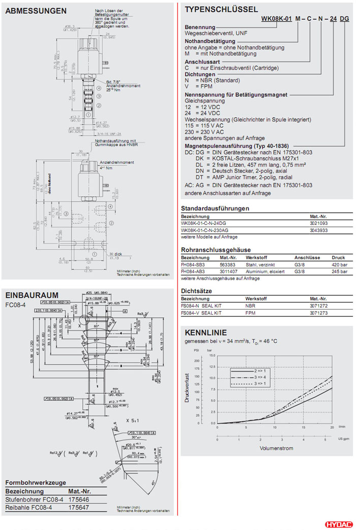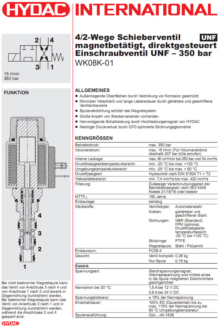 WK08K-01-C-N-24DG,WK08K-01-C-N-230AG,HYDAC電磁4/2方向滑閥